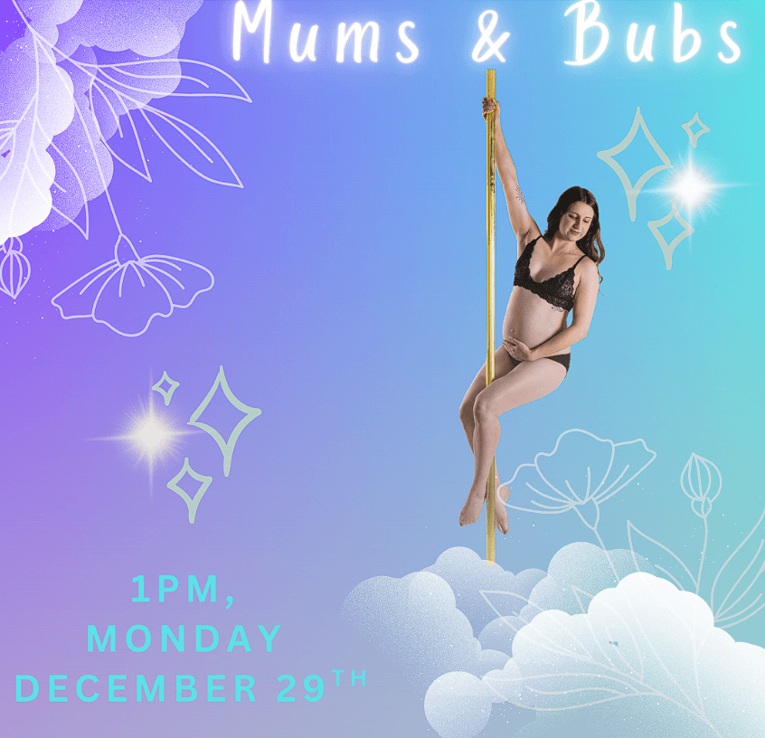 Mums, dads, all parents welcome! This is a different M&Bs to what we usually deliver. You will do some fun things on the pole, have a chat and socialise, plus learn some safe pregnancy and post-partum stretches. You can bring babies or leave them at home, up to you as this class is for the parents!